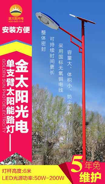 廠家直銷中國紅6米太陽能路燈¥600-1280元